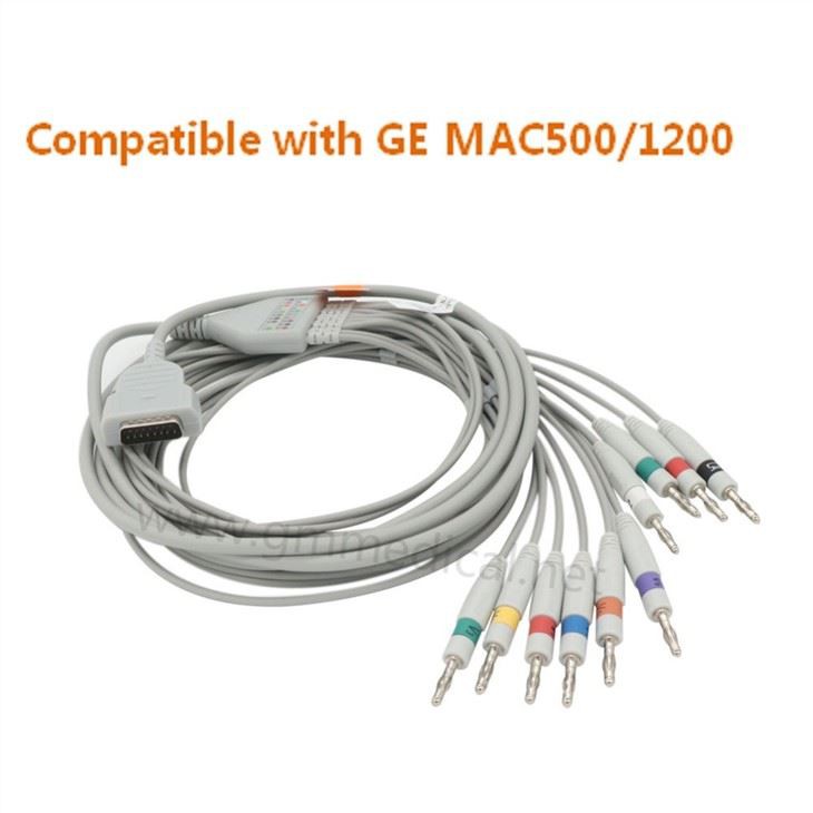 Kabel EKG Satu Potong dan Leadwires 10-Lead Kompatibel dengan GE MAC500/1200,AHA,Pisang