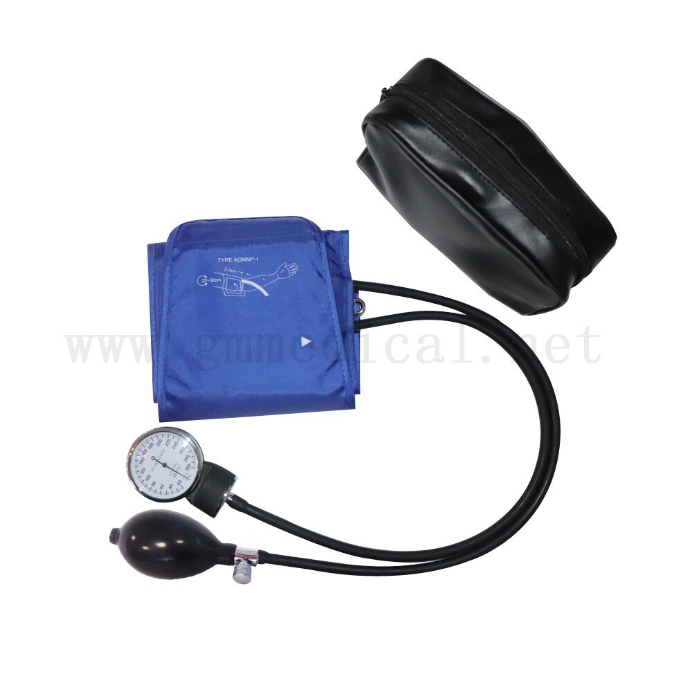 Manset tekanan darah manual dewasa, manset tabung ganda dengan pengukur tekanan dan bohlam inflasi, dengan kantong babi.