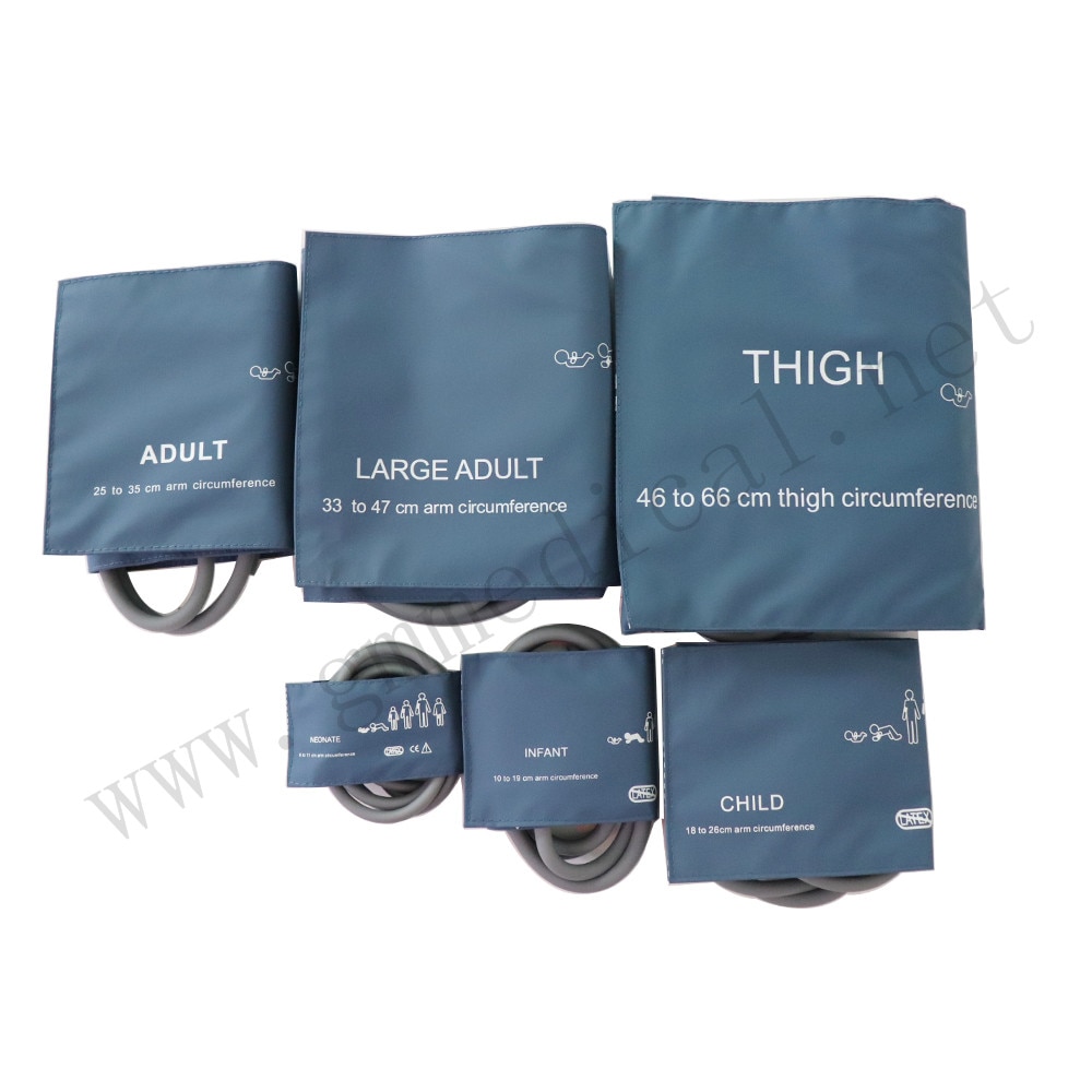CF004TF-B: Manset NIBP tabung ganda Paha lembut, Lingkar Lengan 46-66cm, Biru
