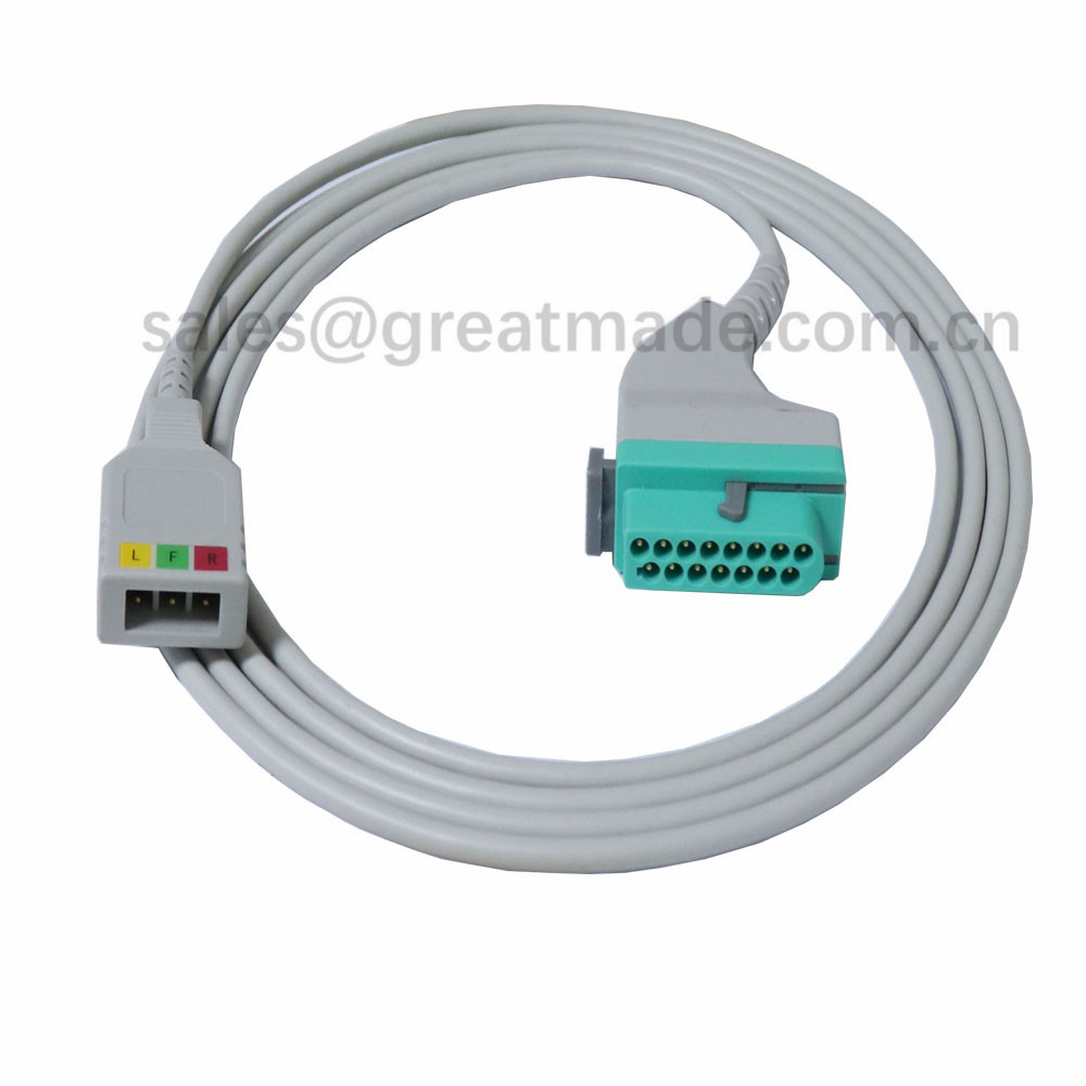 Kompatibel Fukuda DS8100, DS8200, DS8500 3-lead EKG kabel 15pin