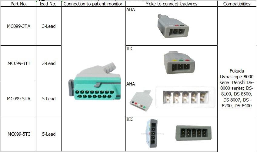 Terapkan untuk monitor multi-parameter / mesin elektrokardiogram / latihan treadmill atau defibrillator, transit sinyal bio-listrik manusia-tubuh. Kabel pasien dan kawat timah elektroda digunakan untuk menghubungkan elektroda, kateter, dan / atau sensor yang ditempatkan di lokasi yang sesuai pada pasien ke perangkat pemantauan untuk pemantauan umum dan / atau evaluasi diagnostik oleh seorang profesional kesehatan