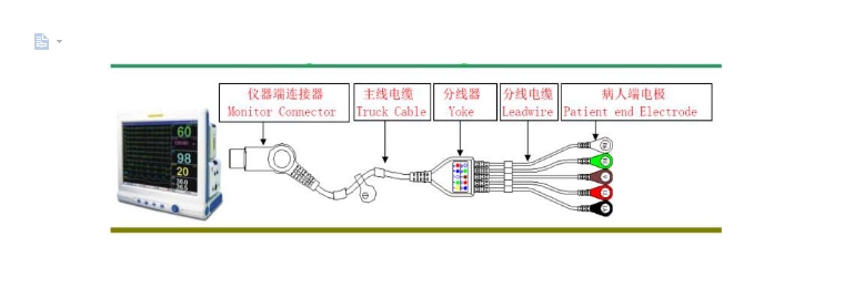 Hubungkan kabel EKG dengan monitor pasien adaptif, dan periksa apakah operasi sama dengan instruksi operasi manual operasi. Elektroda ECG dari kawat timah harus dihubungkan pada pasien secara berurutan, kawat timah harus dihubungkan secara terpisah untuk menghindari terjalin, jika tidak dapat menyebabkan gangguan selama pemantauan, seperti fluktuasi denyut jantung, fluktuasi bentuk gelombang dll.