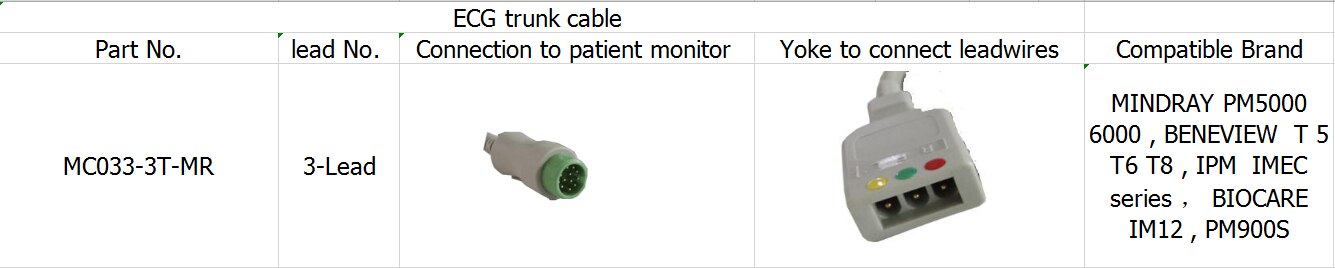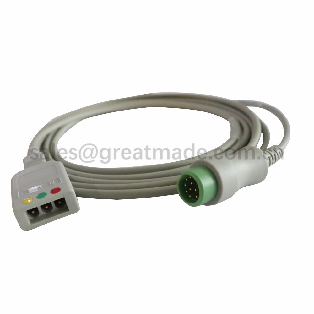 Kabel EKG 3-lead kabel trunk untuk BENEVIEW T5 T6 T8, BIOCARE IM12, PM900S