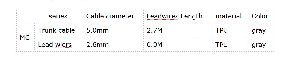 Terapkan untuk monitor multi-parameter / mesin elektrokardiogram / latihan treadmill atau defibrillator, transit sinyal bio-listrik manusia-tubuh. Kabel pasien dan kawat timah elektroda digunakan untuk menghubungkan elektroda, kateter, dan / atau sensor yang ditempatkan di lokasi yang sesuai pada pasien ke perangkat pemantauan untuk pemantauan umum dan / atau evaluasi diagnostik oleh seorang profesional kesehatan