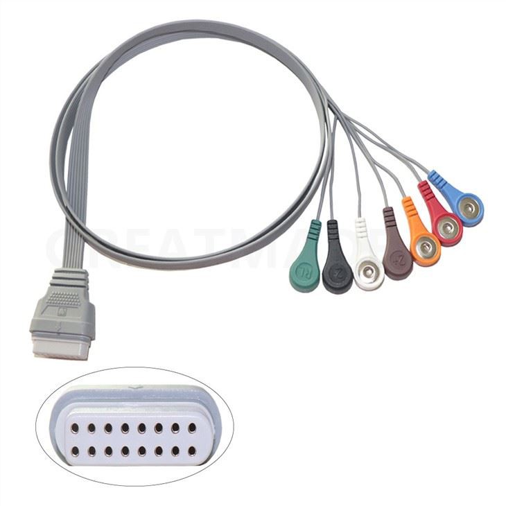 China Medical, Kompatibel Edan Se-2003 / Se-2012 16pin 7 Memimpin Snap Type Holter Ecg Cable