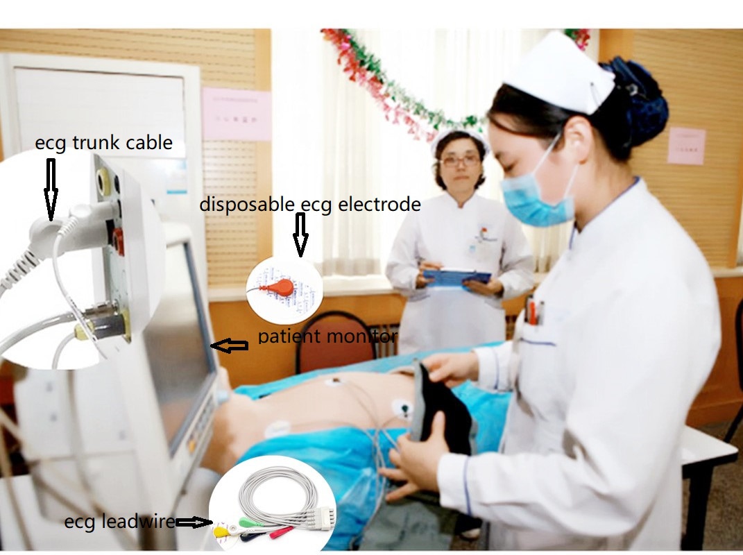 Hubungkan kabel EKG dengan monitor pasien adaptif, dan periksa apakah operasi sama dengan instruksi operasi manual operasi. Elektroda ECG dari kawat timah harus dihubungkan pada pasien secara berurutan, kawat timah harus dihubungkan secara terpisah untuk menghindari terjalin, jika tidak dapat menyebabkan gangguan selama pemantauan, seperti fluktuasi denyut jantung, fluktuasi bentuk gelombang dll.
