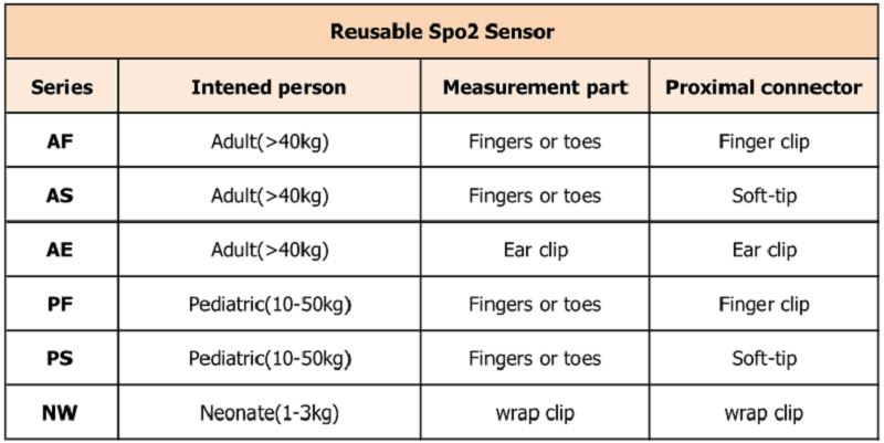 (Seri AF&AS) Sensor spo2 reusable yang dibuat ulang terhubung dengan oksimeter pulsa yang kompatibel untuk pemantauan non-invasif terus-menerus dari saturasi oksigen fungsional hemoglobin arteri (SpO2) dan laju denyut (PR) untuk pasien dewasa yang beratnya lebih dari 40kg.