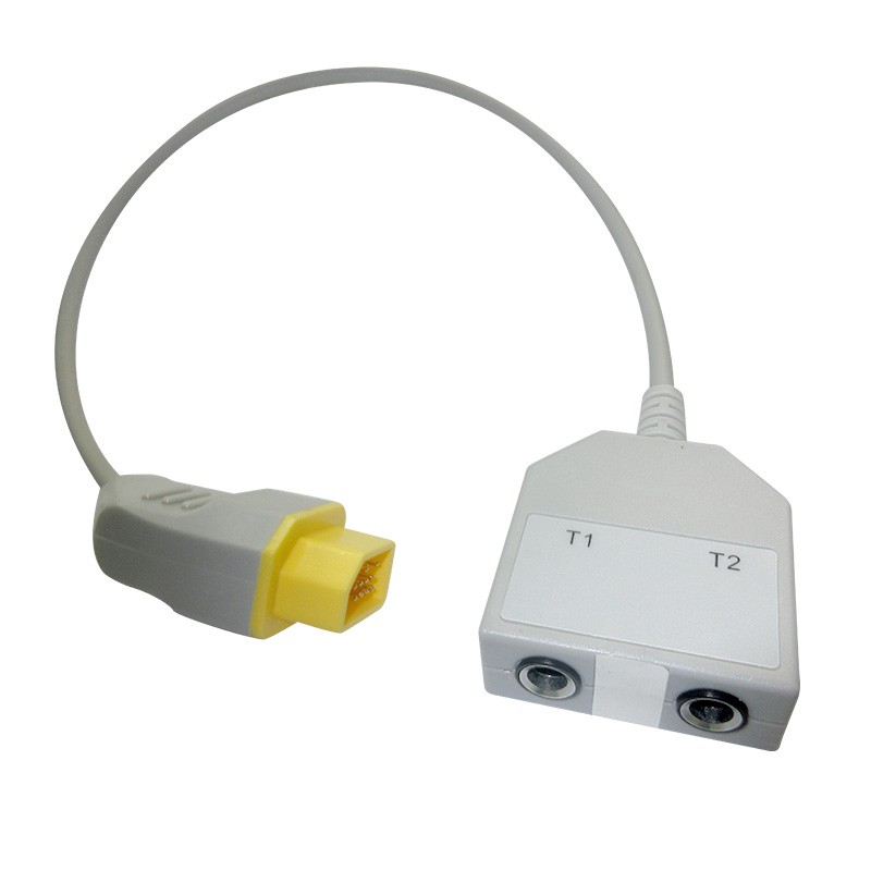 - Hubungkan kabel: Sejajarkan konektor kabel adaptor dengan antarmuka pada perangkat medis dan masukkan dengan lembut tetapi kuat sampai dimasukkan sepenuhnya dan koneksi yang aman tercapai. Kemudian, sambungkan ujung kabel lainnya ke probe suhu dengan cara yang sama.